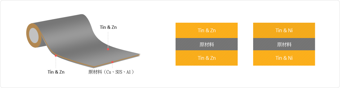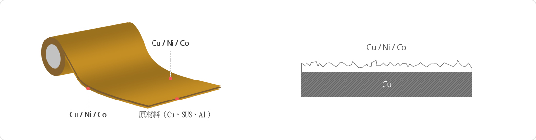 本公司所采取的單一電鍍是主要在銅、不銹鋼等多種金屬箔上進行電鍍表面處理。
