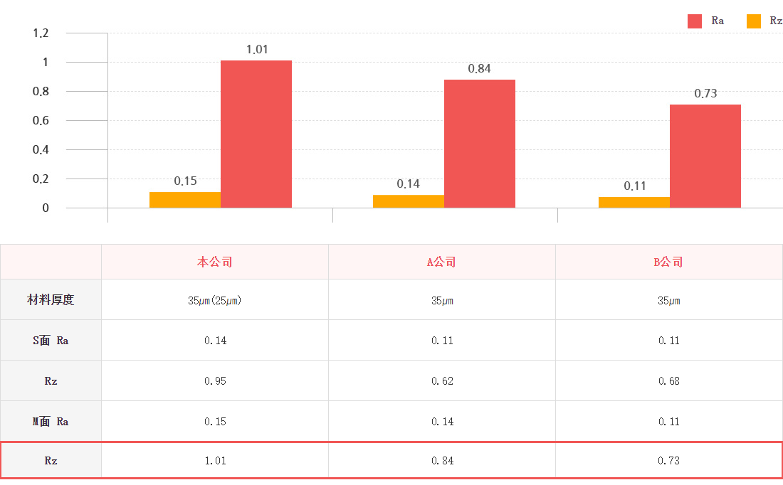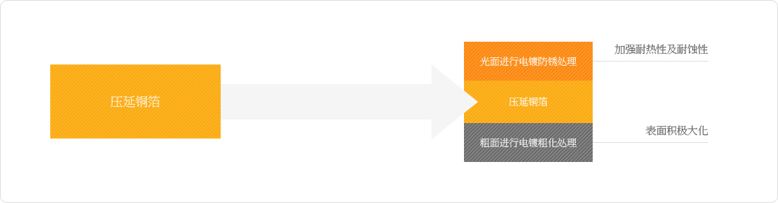通過采用壓延銅箔材料,開發粗化(Nodule)電鍍技術及防銹鍍層技術。