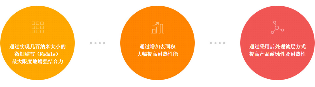 其中,為了提高其與聚合物(PE、PI、PET)之間的結合力, 通過采用以納米大小為單位的金屬粗化(Nodular)技術而制造粗面。