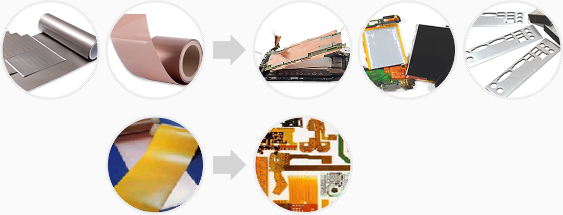 經過上述特殊處理的二元、三元合金箔提高結合力,與不容易粘貼的PI材料進行結合起來,而廣泛適用于FPC、PTC、FCCL材料。