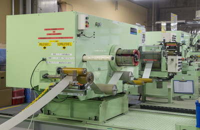 倍于后續(xù)工藝中實(shí)際使用寬度的帶材上電鍍,然后由熟知電鍍材料切割工業(yè)的人員切割分條,可以如同復(fù)制般同時(shí)得到多卷材料。