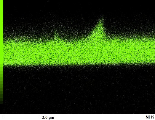 | 鎳粗糙SEM圖像10,000次 | 粗糙的鎳SEM圖像10,000倍 EDS鎳圖像 | 粗糙的鎳SEM圖像10,000倍 材料(銅)EDS圖像 |