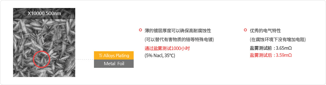 <div class="plastic_t" style="text-wrap: wrap; box-sizing: border-box; margin-bottom: 50px; background-image: url("uploads/images/h3_bg.png"); background-position: left center; background-size: initial; background-repeat: no-repeat; background-attachment: initial; background-origin: initial; background-clip: initial; font-family: "Microsoft Yahei", sans-serif; font-size: 14px;"><span style="box-sizing: border-box; display: block; padding-left: 30px; font-size: 25px; font-weight: 600; color: rgb(5, 5, 5);"><span style="color: rgb(5, 5, 5); font-family: "Microsoft Yahei", sans-serif; font-size: 25px; font-weight: 600; text-wrap: wrap;">電鍍說明</span></span></div><p style="box-sizing: border-box; padding-left: 0px; margin-top: 0px; margin-bottom: 0px; color: rgb(86, 86, 86); font-family: "Microsoft Yahei", sans-serif; text-wrap: wrap;">本公司所采取的單一電鍍是主要在銅、不銹鋼等多種金屬箔上進行電鍍表面處理。</p><p style="box-sizing: border-box; padding-left: 0px; margin-top: 0px; margin-bottom: 0px; color: rgb(86, 86, 86); font-family: "Microsoft Yahei", sans-serif; text-wrap: wrap;">經(jīng)過上述過程而生產(chǎn)的產(chǎn)品可取代高價金屬或稀有金屬,不僅能賦予電氣特性及電磁特性,也能加強產(chǎn)品的防銹性。</p><p style="box-sizing: border-box; padding-left: 0px; margin-top: 0px; margin-bottom: 0px; color: rgb(86, 86, 86); font-family: "Microsoft Yahei", sans-serif; text-wrap: wrap;">同時,單一電鍍方式的特點是在對不同截面進行不同形狀的電鍍處理,光面(shiny side)及粗面(matte side)各有獨特的形狀。</p><p style="box-sizing: border-box; padding-left: 0px; margin-top: 0px; margin-bottom: 0px; color: rgb(86, 86, 86); font-family: "Microsoft Yahei", sans-serif; text-wrap: wrap;">其中,為了提高其與聚合物(PE、PI、PET)之間的結(jié)合力, 通過采用以納米大小為單位的金屬粗化(Nodular)技術(shù)而制造粗面。</p><p style="box-sizing: border-box; padding-left: 0px; margin-top: 0px; margin-bottom: 0px; color: rgb(86, 86, 86); font-family: "Microsoft Yahei", sans-serif; text-wrap: wrap;">為了提高最終產(chǎn)品(成品)的外觀,在光面上進行均一的電鍍處理。</p><section class="two_list_ar" style="display: flex;gap: 20px;text-align: center;"><section class="" style="flex: 0.5;"><p><br/></p><p><img src="/uploads/allimg/20240831/1-240S10944404C.jpg"/></p><br/><p><span style="color: rgb(51, 51, 51); font-family: "Microsoft Yahei", sans-serif; font-size: 18px; font-weight: 600; text-align: center; text-wrap: wrap;">代表性原材料</span></p><p><span style="color: rgb(51, 51, 51); font-family: "Microsoft Yahei", sans-serif; font-size: 15px; text-align: center; text-wrap: wrap;">壓延銅箔 / 電解銅箔 / 不銹鋼箔 / 鋁箔</span></p></section><section class="" style="flex: 0.5;"><p><br/></p><p><img src="/uploads/allimg/20240831/1-240S10945103G.jpg"/></p><p><span style="color: rgb(51, 51, 51); font-family: "Microsoft Yahei", sans-serif; font-size: 18px; font-weight: 600; text-align: center; text-wrap: wrap;"><br/></span></p><p><span style="color: rgb(51, 51, 51); font-family: "Microsoft Yahei", sans-serif; font-size: 18px; font-weight: 600; text-align: center; text-wrap: wrap;">代表性電鍍材料</span></p><p><span style="color: rgb(51, 51, 51); font-family: "Microsoft Yahei", sans-serif; font-size: 15px; text-align: center; text-wrap: wrap;">金 / 銀 / 銅 / 鎳 / 錫 / 鋅</span></p></section></section><p style="text-wrap: wrap;"><br/></p><div class="plastic_t" style="text-wrap: wrap; box-sizing: border-box; margin-bottom: 50px; background-image: url("uploads/images/h3_bg.png"); background-position: left center; background-size: initial; background-repeat: no-repeat; background-attachment: initial; background-origin: initial; background-clip: initial; font-family: "Microsoft Yahei", sans-serif; font-size: 14px;"><span style="box-sizing: border-box; display: block; padding-left: 30px; font-size: 25px; font-weight: 600; color: rgb(5, 5, 5);"><span style="color: rgb(5, 5, 5); font-family: "Microsoft Yahei", sans-serif; font-size: 25px; font-weight: 600; text-wrap: wrap;">產(chǎn)品、電鍍示例</span></span></div><p style="text-align:center"><img src="/uploads/allimg/20240831/1-240S1094AB20.jpg"/></p><p style="margin-top: 0px; margin-bottom: 0px; box-sizing: border-box; padding-left: 0px;"><span style="color: rgb(86, 86, 86); font-family: "Microsoft Yahei", sans-serif; text-wrap: wrap;">單面/雙面都可進行表面處理,在各種元素材料上利用許多材料進行電鍍處理</span></p><p style="margin-top: 0px; margin-bottom: 0px; box-sizing: border-box; padding-left: 0px;"><span style="color: rgb(86, 86, 86); font-family: "Microsoft Yahei", sans-serif; text-wrap: wrap;"><br/></span></p><p style="margin-top: 0px; margin-bottom: 0px; box-sizing: border-box; padding-left: 0px;"><br/></p><div class="plastic_t" style="text-wrap: wrap; box-sizing: border-box; margin-bottom: 50px; background-image: url("uploads/images/h3_bg.png"); background-position: left center; background-size: initial; background-repeat: no-repeat; background-attachment: initial; background-origin: initial; background-clip: initial; font-family: "Microsoft Yahei", sans-serif; font-size: 14px;"><span style="box-sizing: border-box; display: block; padding-left: 30px; font-size: 25px; font-weight: 600; color: rgb(5, 5, 5);"><span style="color: rgb(5, 5, 5); font-family: "Microsoft Yahei", sans-serif; font-size: 25px; font-weight: 600; text-wrap: wrap;">電鍍表面照片</span></span></div><p style="margin-top: 0px; margin-bottom: 0px; box-sizing: border-box; padding-left: 0px;"><br style="text-wrap: wrap;"/></p><section class="two_list_ar" style="display: flex;gap: 20px;text-align: center;"><section class="" style="flex: 0.5;"><div><p><img src="/uploads/allimg/20240831/1-240S1095U1436.jpg"/></p></div><p><span style="color: rgb(51, 51, 51); 
