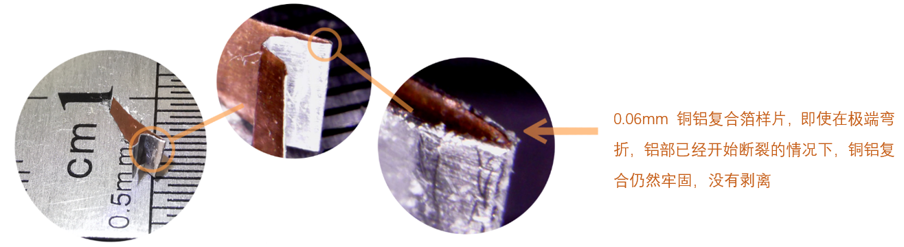 錦華隆電子材料的新型熔融鍍銅鋁復合箔材料使用先進電鍍/軋制與熱處理聯合工藝,銅鋁實現冶金結合,界面雜質極少,全面優化導電導熱性能,剝離強度大??梢栽陔娮有袠I的相當多應用中對銅箔替代。同等面積情況下重量僅為銅箔的約1/3,且使用方式與銅箔類似,可沖壓可彎折和錫焊。